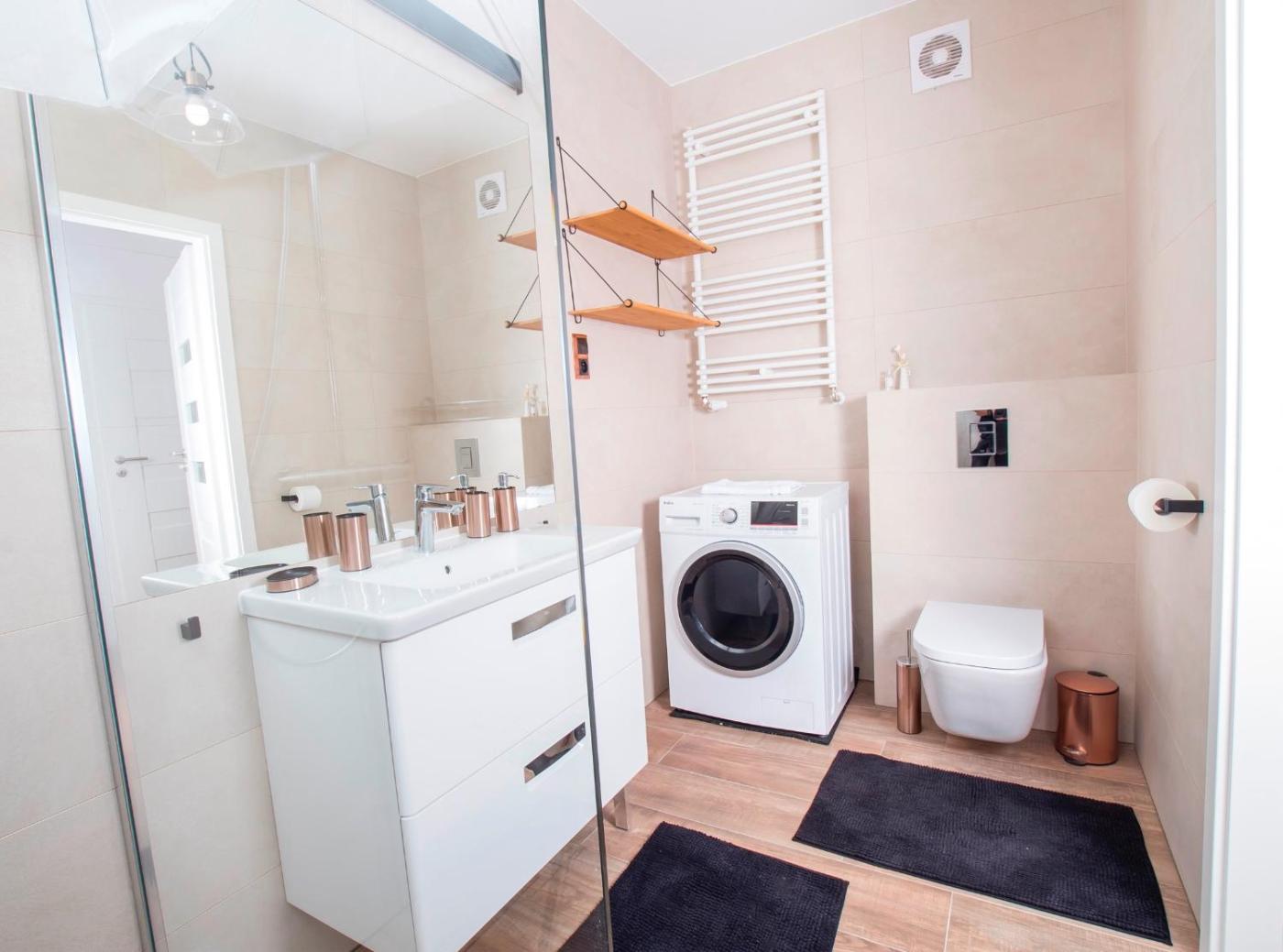 Apartament z 1 sypialnią. Ten apartament z prywatnym wejściem zapewnia prywatną łazienkę, pralkę i część wypoczynkową z telewizorem z płaskim ekranem. We w pełni wyposażonej kuchni przygotowano płytę kuchenną, lodówkę, zmywarkę do naczyń i przybory kuchenne. Ten apartament oferuje balkon, jadalnię, telewizor oraz zestaw do parzenia kawy i herbaty. W tej opcji zakwaterowania dostępne są 2 łóżka. Apartament - 4 osobowy. Powierzchnia pokoju ok.: 50 mkw. ;