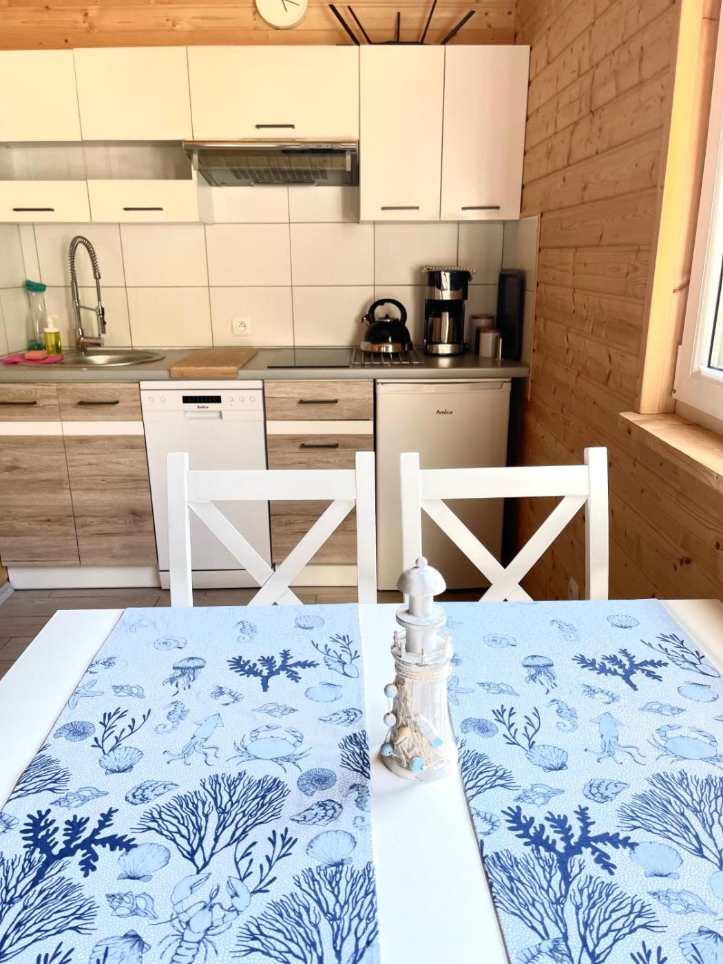 Dom z 2 sypialniami. Boasting a private entrance, this holiday home features 1 living room, 2 separate bedrooms and 1 bathroom with a shower and a hairdryer. Guests will find a stovetop, a refrigerator, a dishwasher and kitchenware in the well-fitted kitchenette. The holiday home also comes with a barbecue. This holiday home has a coffee machine, a dining area, a flat-screen TV with streaming services and a terrace. The unit has 4 beds. Dom wakacyjny - 6 osobowy. Powierzchnia pokoju ok.: 50 mkw.